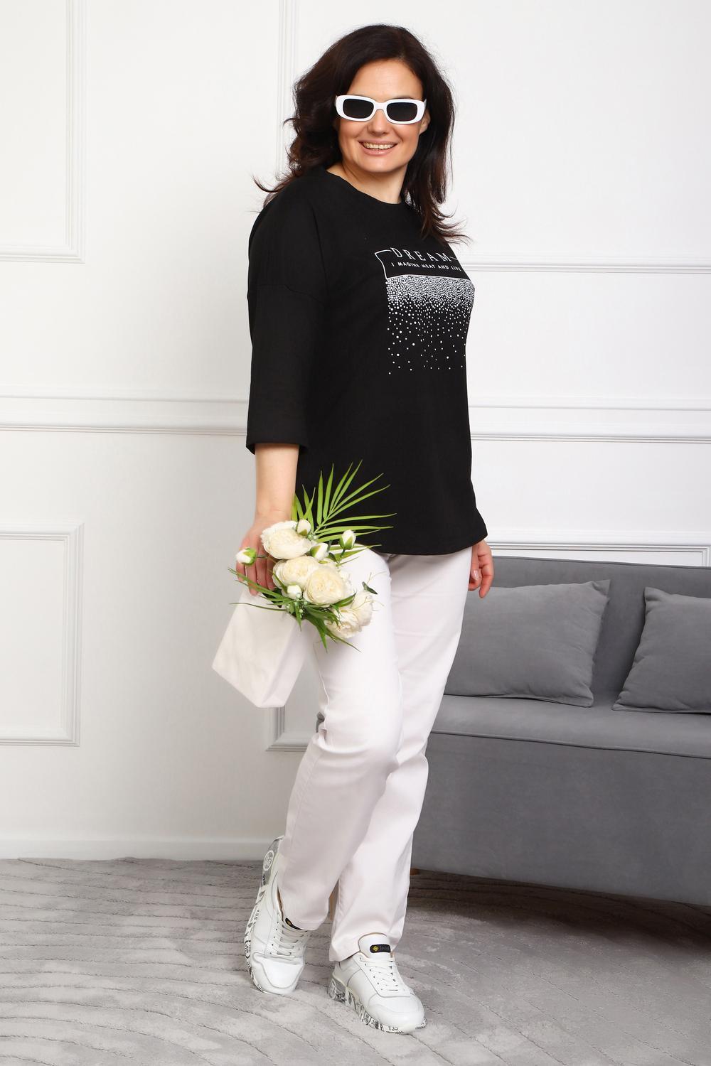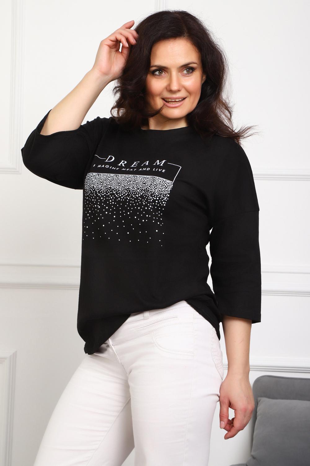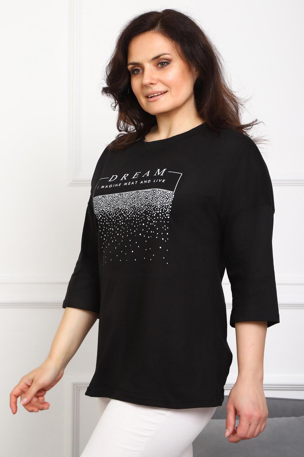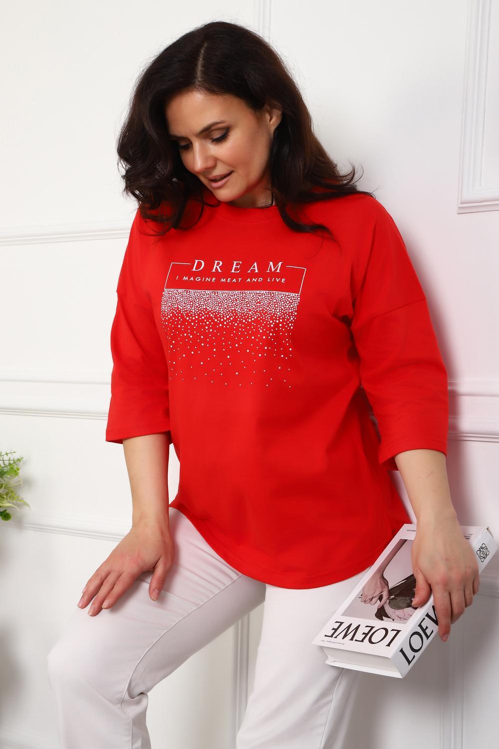 (туника женская дрим) Женская туника из мягкой и приятной к телу кулирки, выполненная из натурального хлопка (100%). Эта модель идеально подчеркнет вашу фигуру благодаря элегантному приталенному силуэту и слегка приспущенной линии плеча. Рукава длиной 3/4 делают образ комфортным и универсальным, а круглый вырез горловины добавляет легкости и нежности общему виду. Особенное внимание привлекает стильный принт на груди, украшенный изящной надписью, создающими романтичное настроение. Свободная посадка обеспечивает комфорт и свободу движений, делая этот предмет гардероба идеальным выбором для повседневных образов и отдыха.