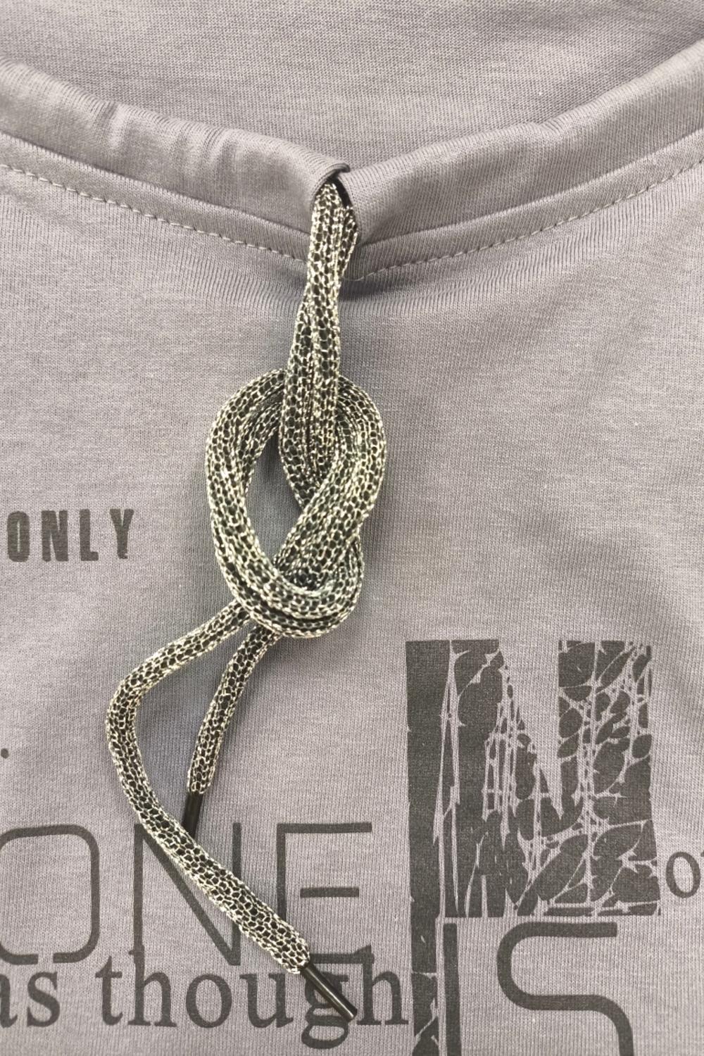 Туника женская свободного кроя со шнурком на горловине и печатью на передней полочке.