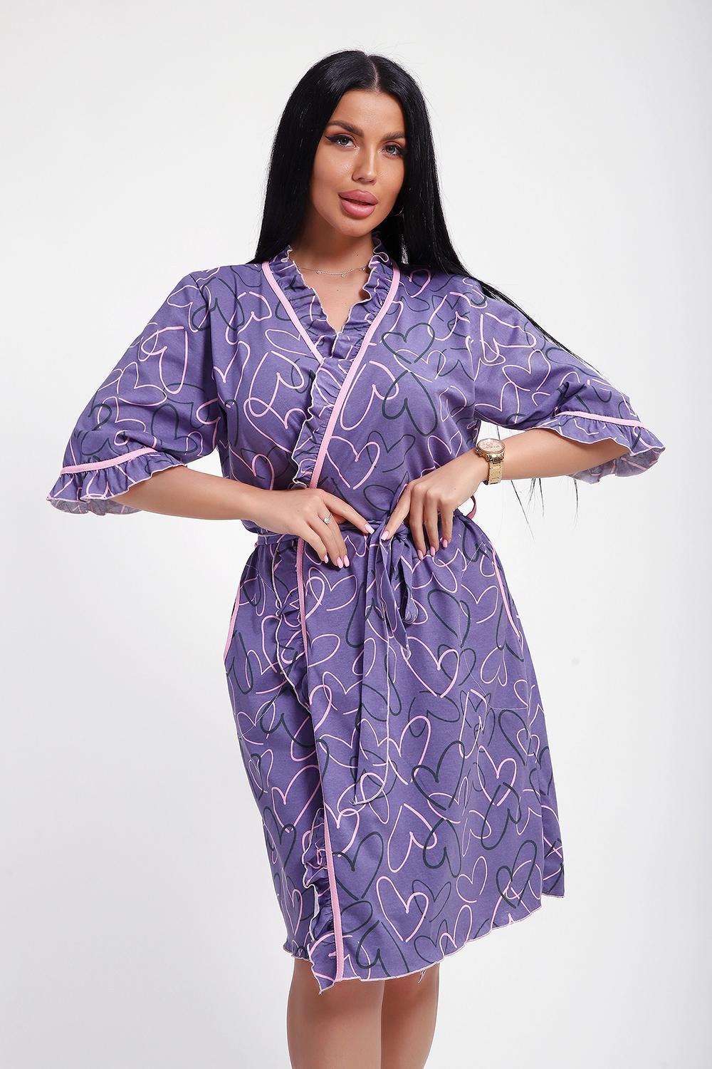 Современный кокетливый халатик с запахом. Создает игривый образ, удобен в эксплуатации. Не сковывает движений, приятен к телу. Изготовлен из трикотажа высокого качества, который не линяет при стирке; имеет глубокий запах и боковые вшивные карманы; с помощью длинного пояса можно создать приталенный силуэт. Модель представлена широким размерным рядом, поэтому подойдёт женщинам различной комплекции. Халат можно носить летом, осенью, зимой и весной, он подходит для разных случаев, включая дачу, отдых, больницу и роддом.