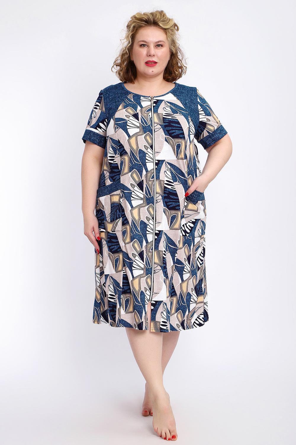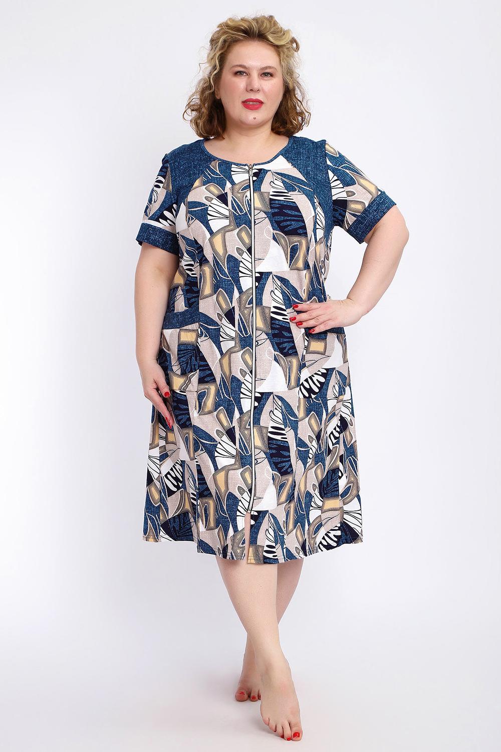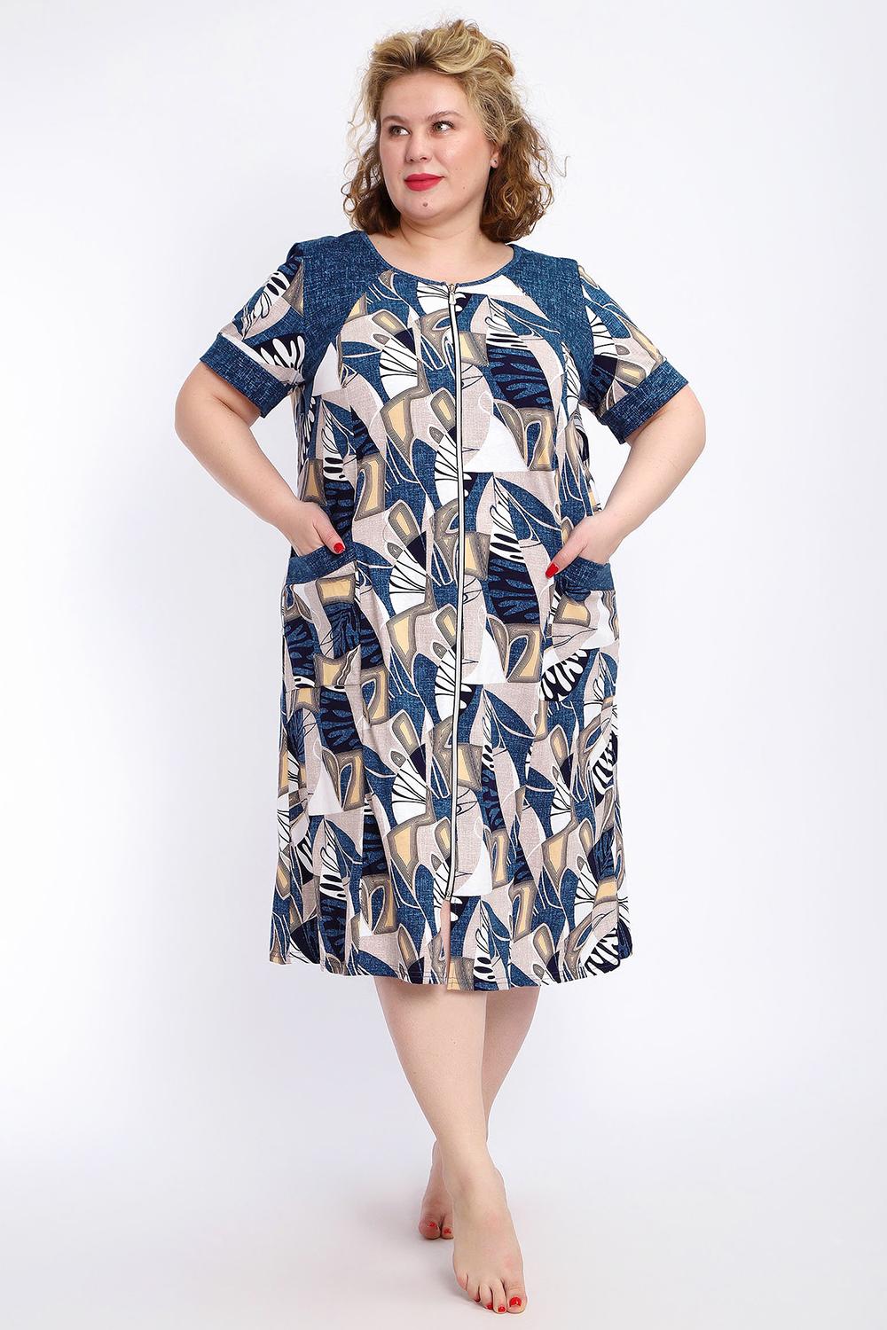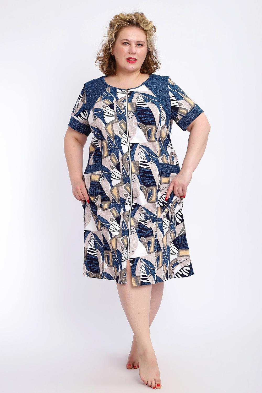 Ощутите домашний уют и комфорт - выбирайте халат женский домашний больших размеров из мягкой хлопковой ткани с очаровательным принтом. Халат на молнии является самой популярной моделью, обеспечивает удобство во время носки, не сковывает движений. Прямой свободный крой платья позволяет скрыть недостатки фигуры и ощущать легкость во время домашнего отдыха. Халат домашний дополнен накладными карманами и стильной круглой горловиной, которая оформлена декоративными планками. Длина платья универсальная, за колено. В наличии есть большие размеры, поэтому выбирайте такой халат в роддом. Изделие выглядит стильно и привлекательно за счет нежных светлых бутонов цветов на контрастном темном фоне. Женская домашняя одежда российского производства имеет идеальную посадку, не линяет, не дает усадку после стирки и долго сохраняет первоначальный внешний вид.