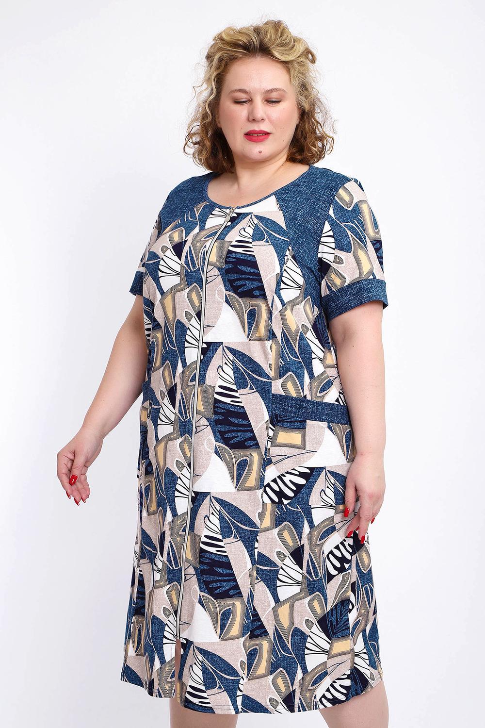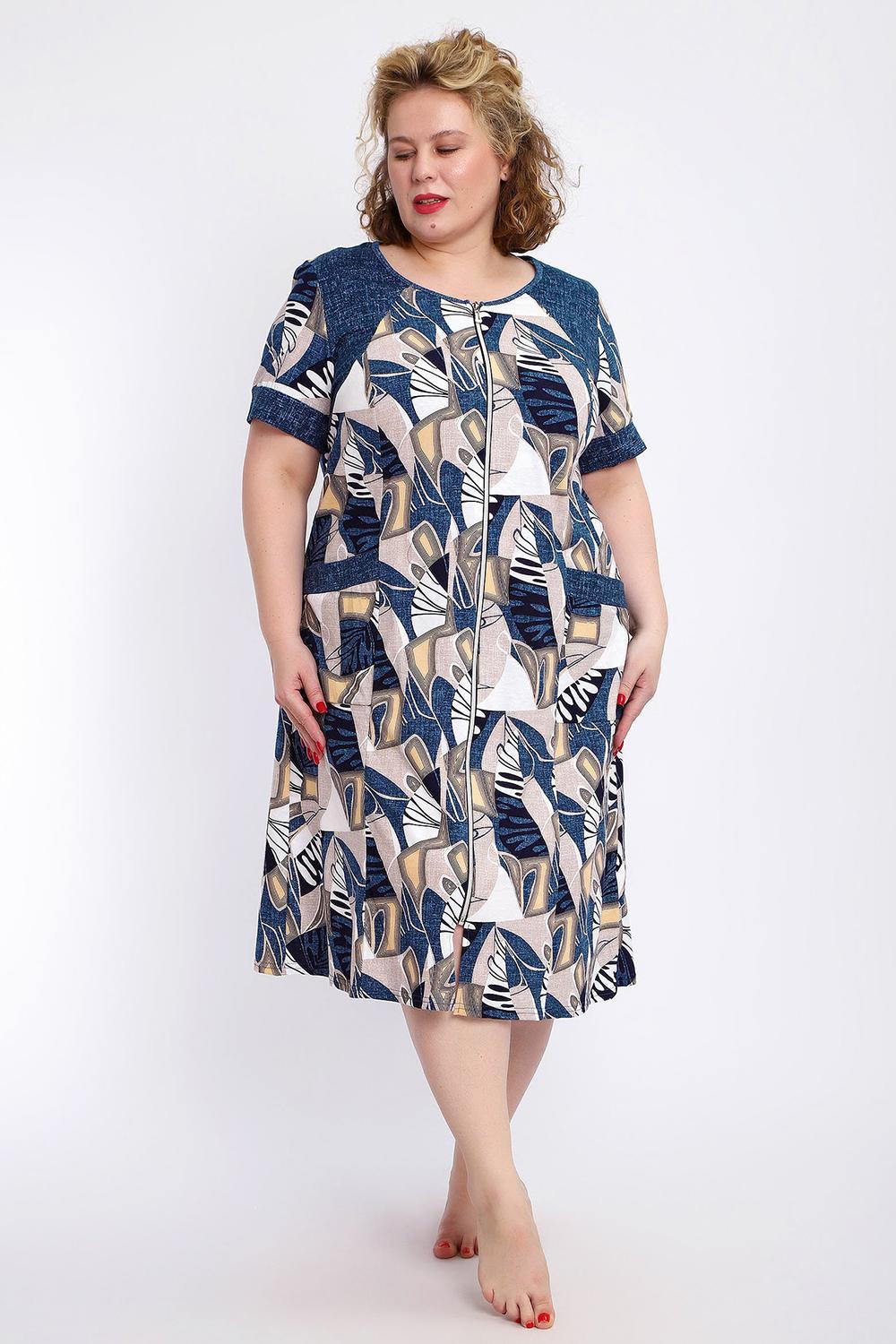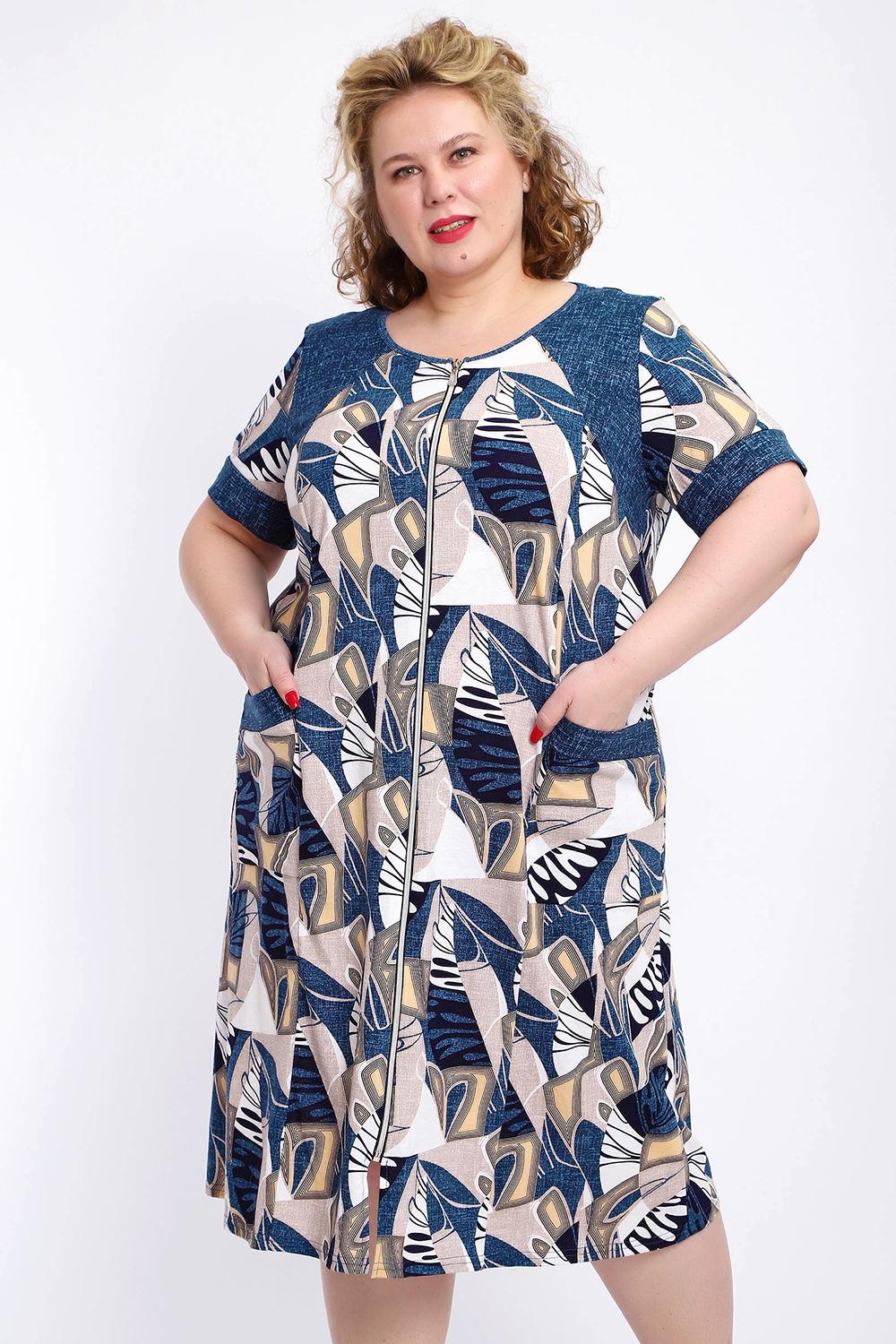 Ощутите домашний уют и комфорт - выбирайте халат женский домашний больших размеров из мягкой хлопковой ткани с очаровательным принтом. Халат на молнии является самой популярной моделью, обеспечивает удобство во время носки, не сковывает движений. Прямой свободный крой платья позволяет скрыть недостатки фигуры и ощущать легкость во время домашнего отдыха. Халат домашний дополнен накладными карманами и стильной круглой горловиной, которая оформлена декоративными планками. Длина платья универсальная, за колено. В наличии есть большие размеры, поэтому выбирайте такой халат в роддом. Изделие выглядит стильно и привлекательно за счет нежных светлых бутонов цветов на контрастном темном фоне. Женская домашняя одежда российского производства имеет идеальную посадку, не линяет, не дает усадку после стирки и долго сохраняет первоначальный внешний вид.