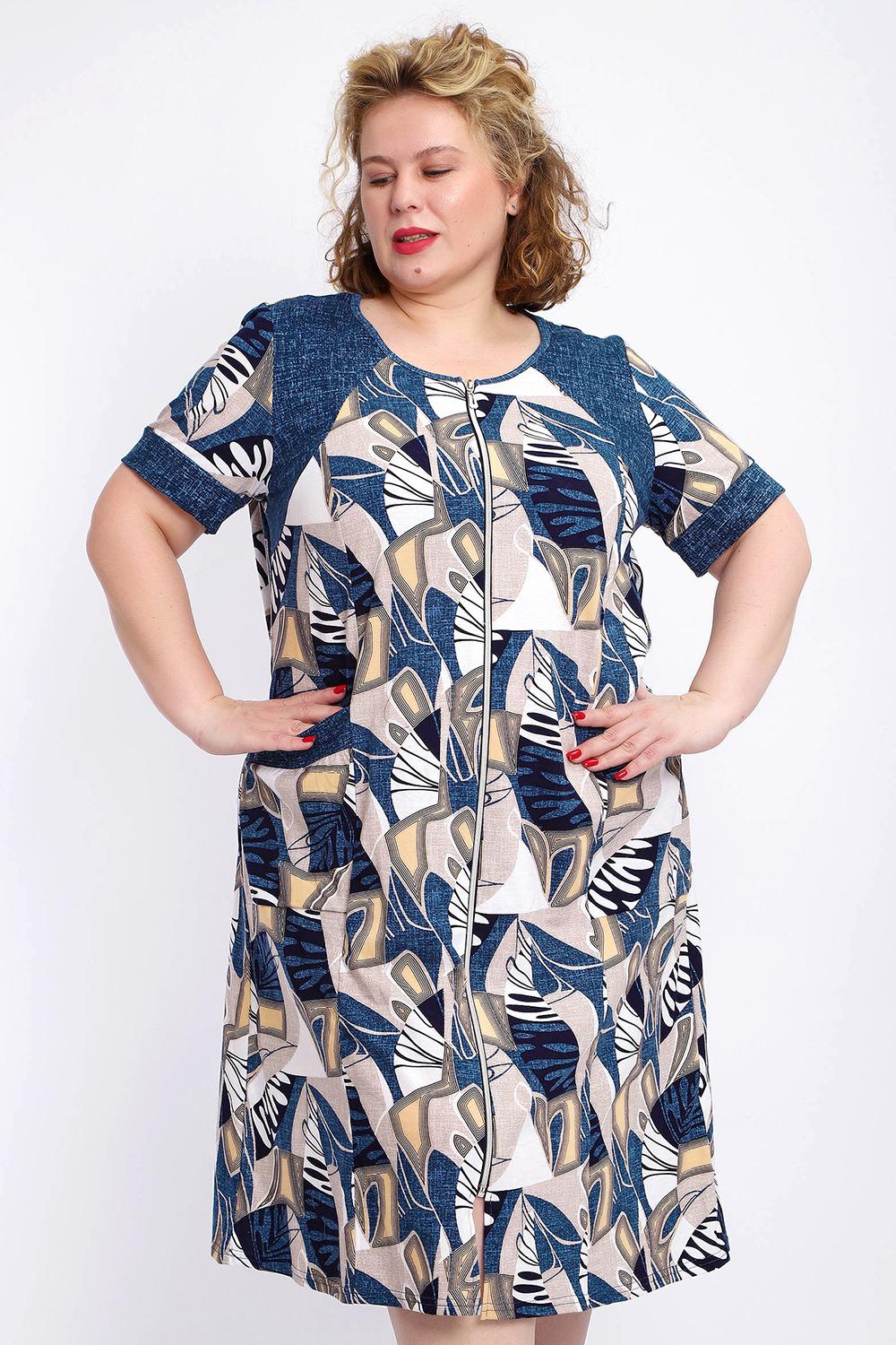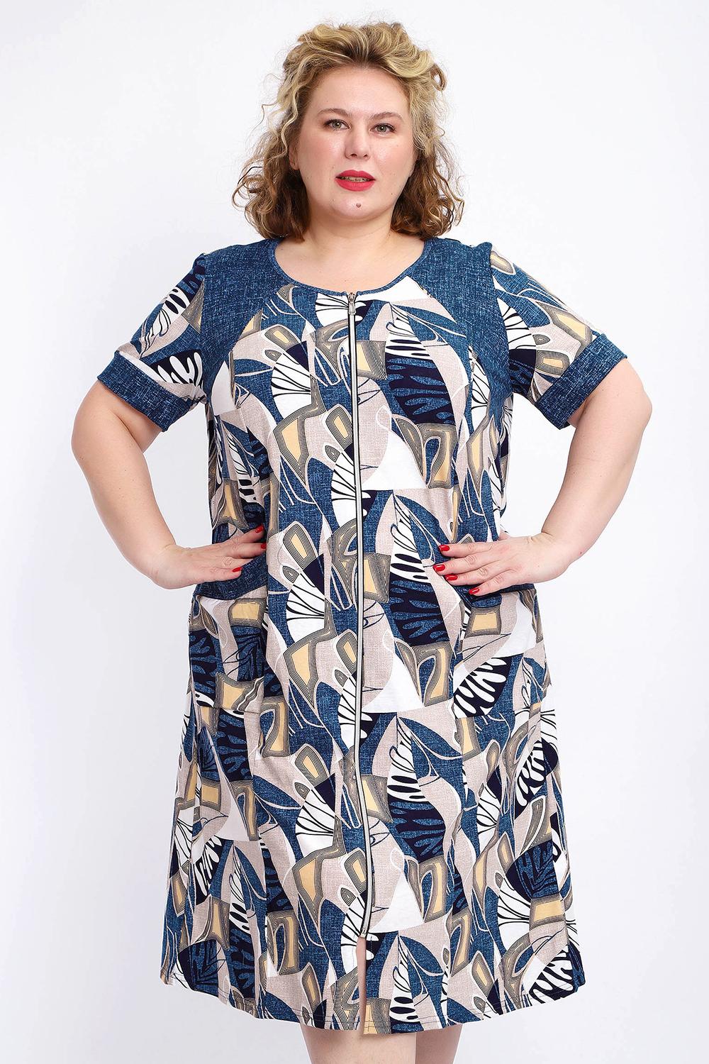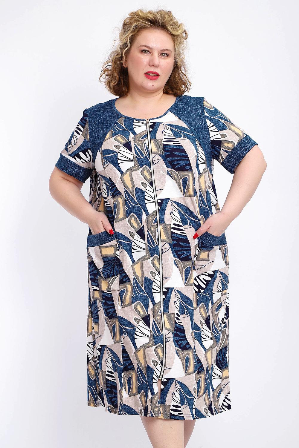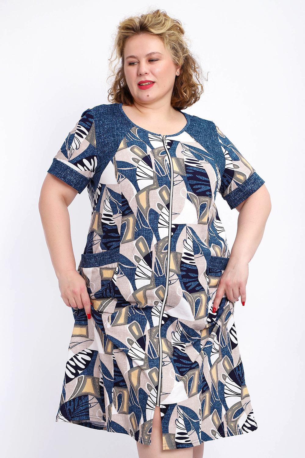 Ощутите домашний уют и комфорт - выбирайте халат женский домашний больших размеров из мягкой хлопковой ткани с очаровательным принтом. Халат на молнии является самой популярной моделью, обеспечивает удобство во время носки, не сковывает движений. Прямой свободный крой платья позволяет скрыть недостатки фигуры и ощущать легкость во время домашнего отдыха. Халат домашний дополнен накладными карманами и стильной круглой горловиной, которая оформлена декоративными планками. Длина платья универсальная, за колено. В наличии есть большие размеры, поэтому выбирайте такой халат в роддом. Изделие выглядит стильно и привлекательно за счет нежных светлых бутонов цветов на контрастном темном фоне. Женская домашняя одежда российского производства имеет идеальную посадку, не линяет, не дает усадку после стирки и долго сохраняет первоначальный внешний вид.