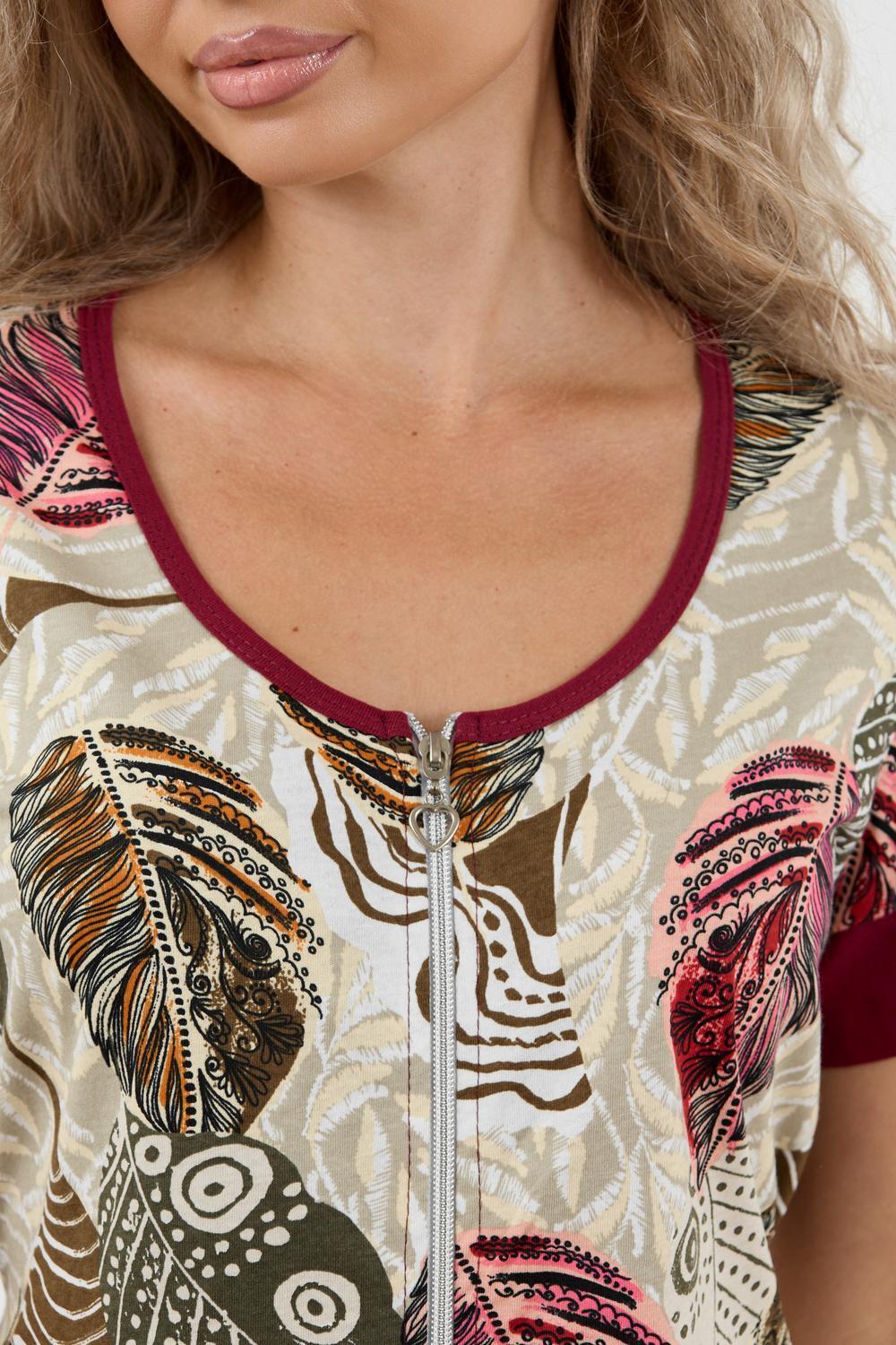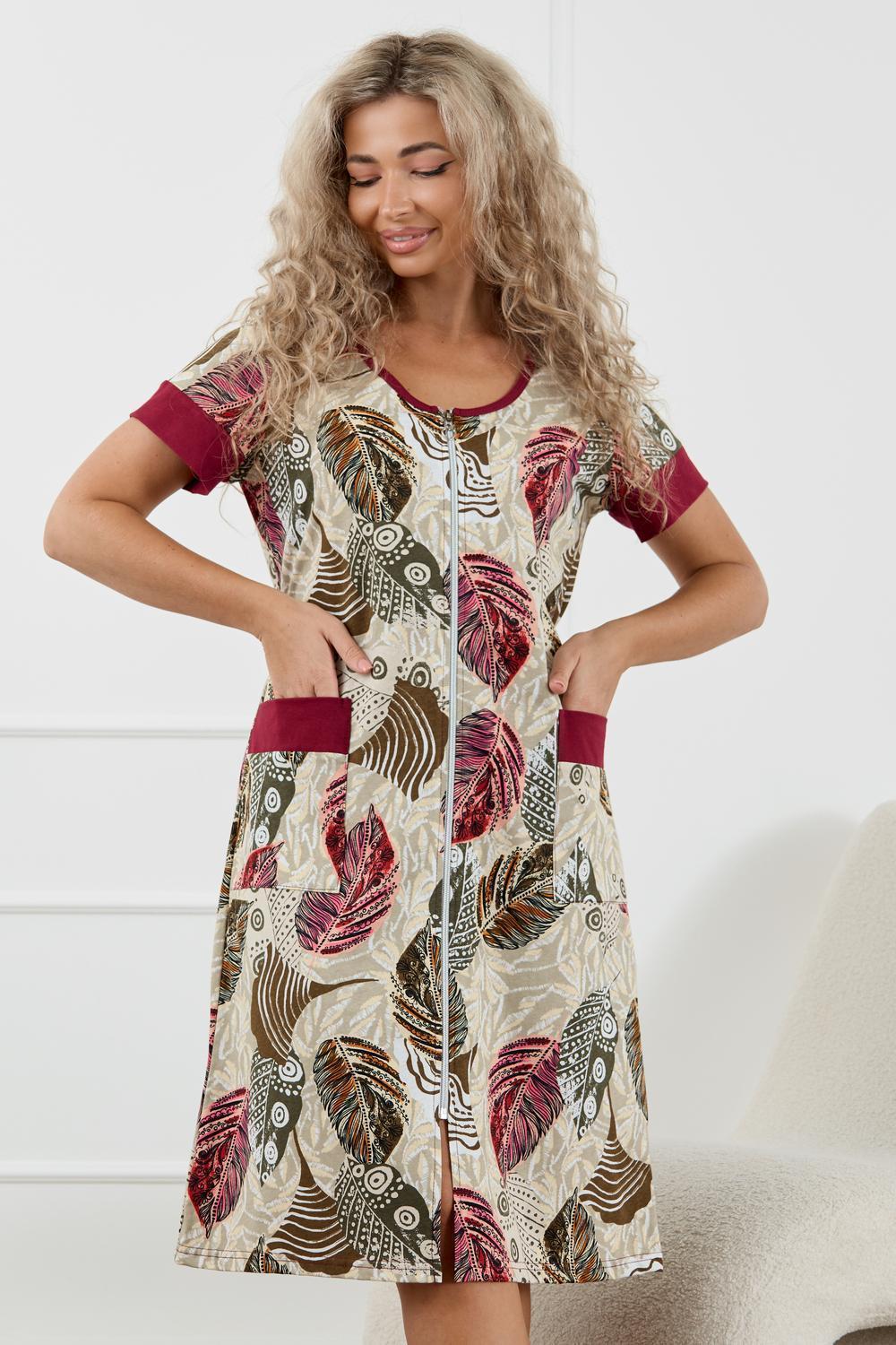Женский халатик на молнии – самая распространенная и универсальная одежда для домашнего отдыха и хозяйственных хлопот. После трудного рабочего дня, приходя домой, первым делом хочется переодеться. И данная модель это идеальный вариант среди представительниц прекрасной половины человечества. Модель выполнена из 100% хлопчатобумажной ткани. Халат так же дополняет яркая отделка по рукавам и карманам. А пояс на линии талии поможет легко смоделировать женственный силуэт и при этом Вы будете чувствовать себя легко и непринуждённо. Данная модель прекрасно подойдёт для дома, дачи и отдыха, создавая по-настоящему яркий образ и хорошее настроение! Рост модели на фото 165см.