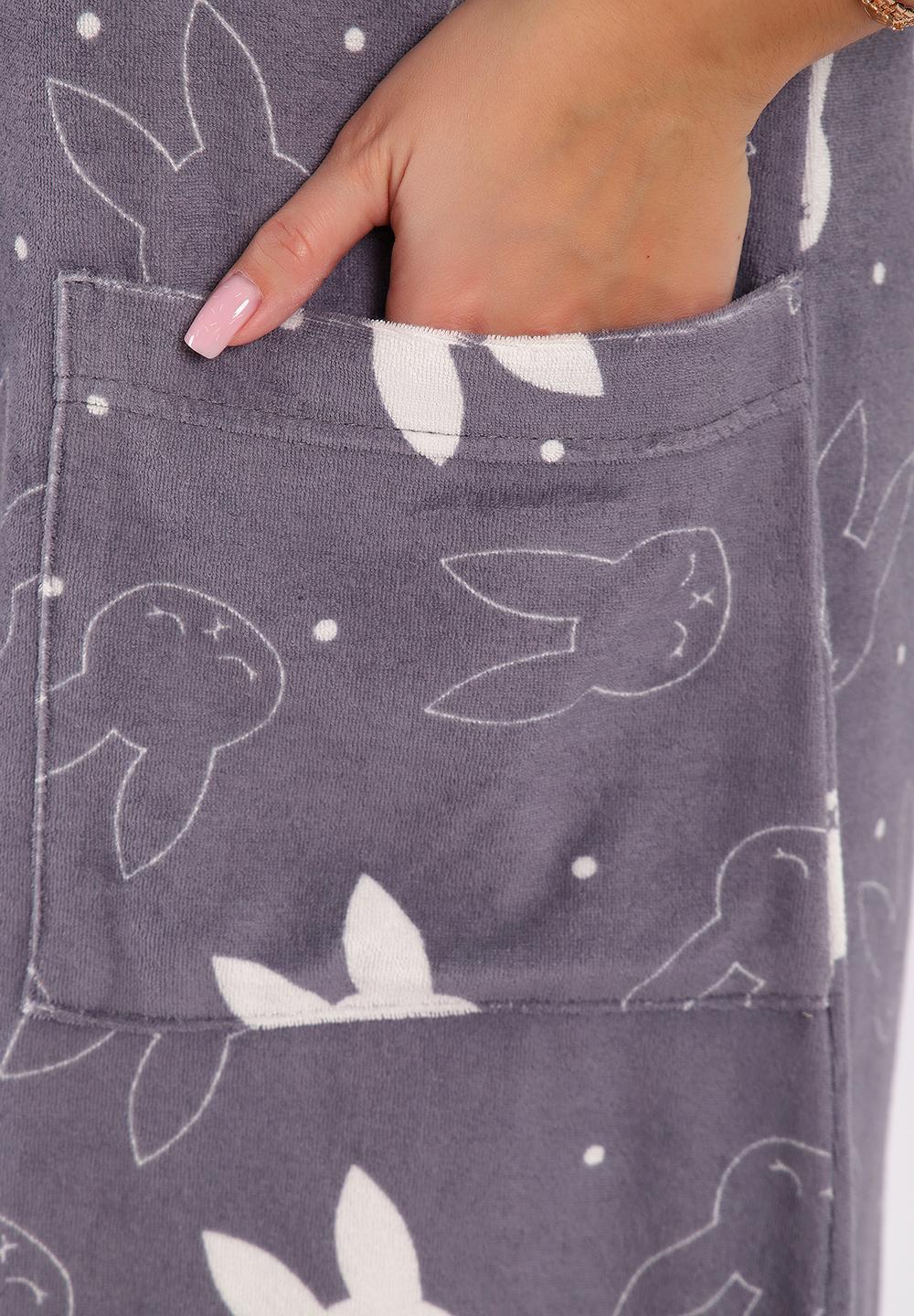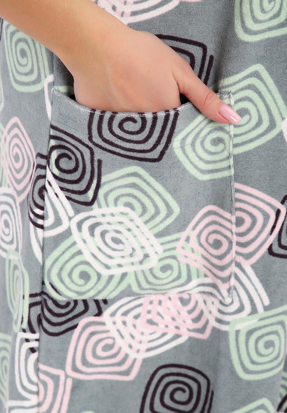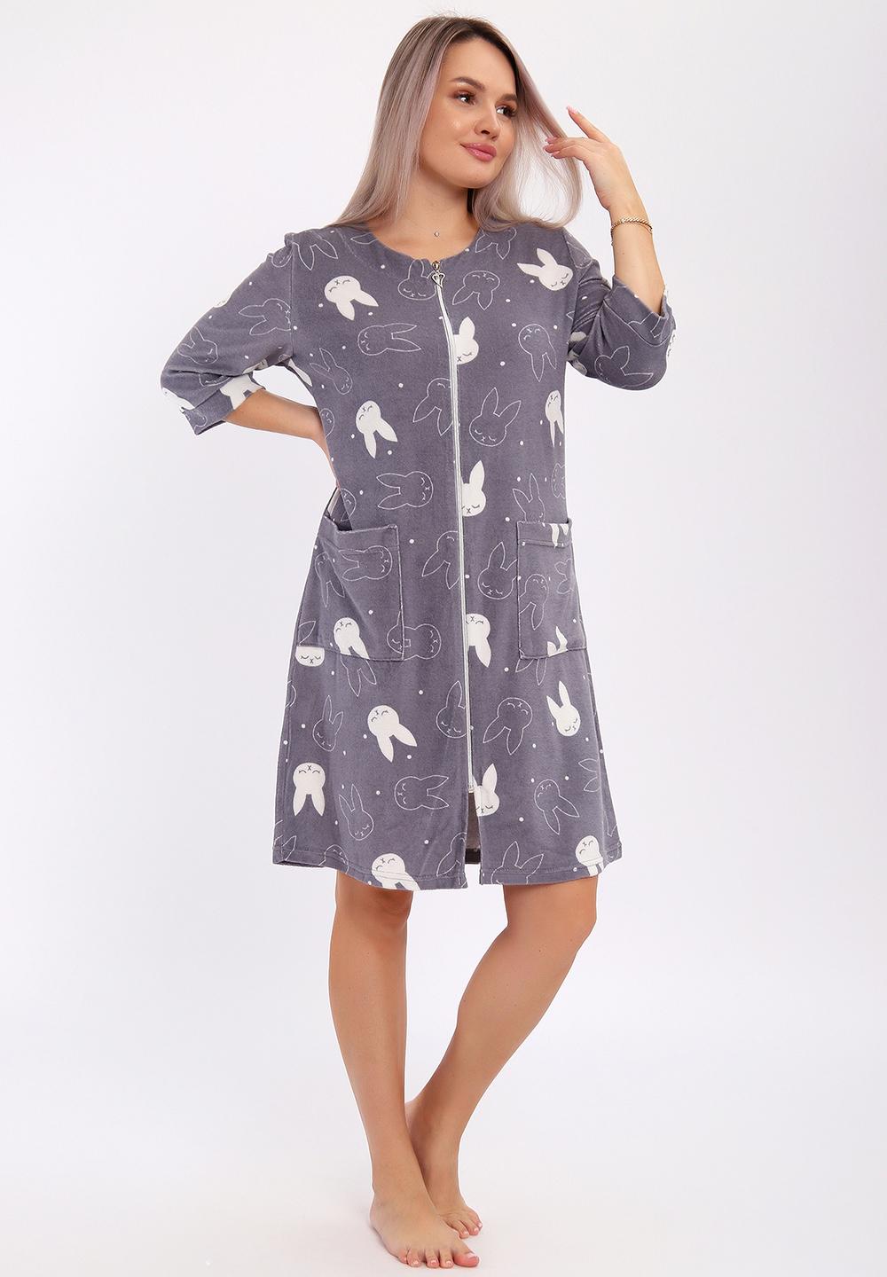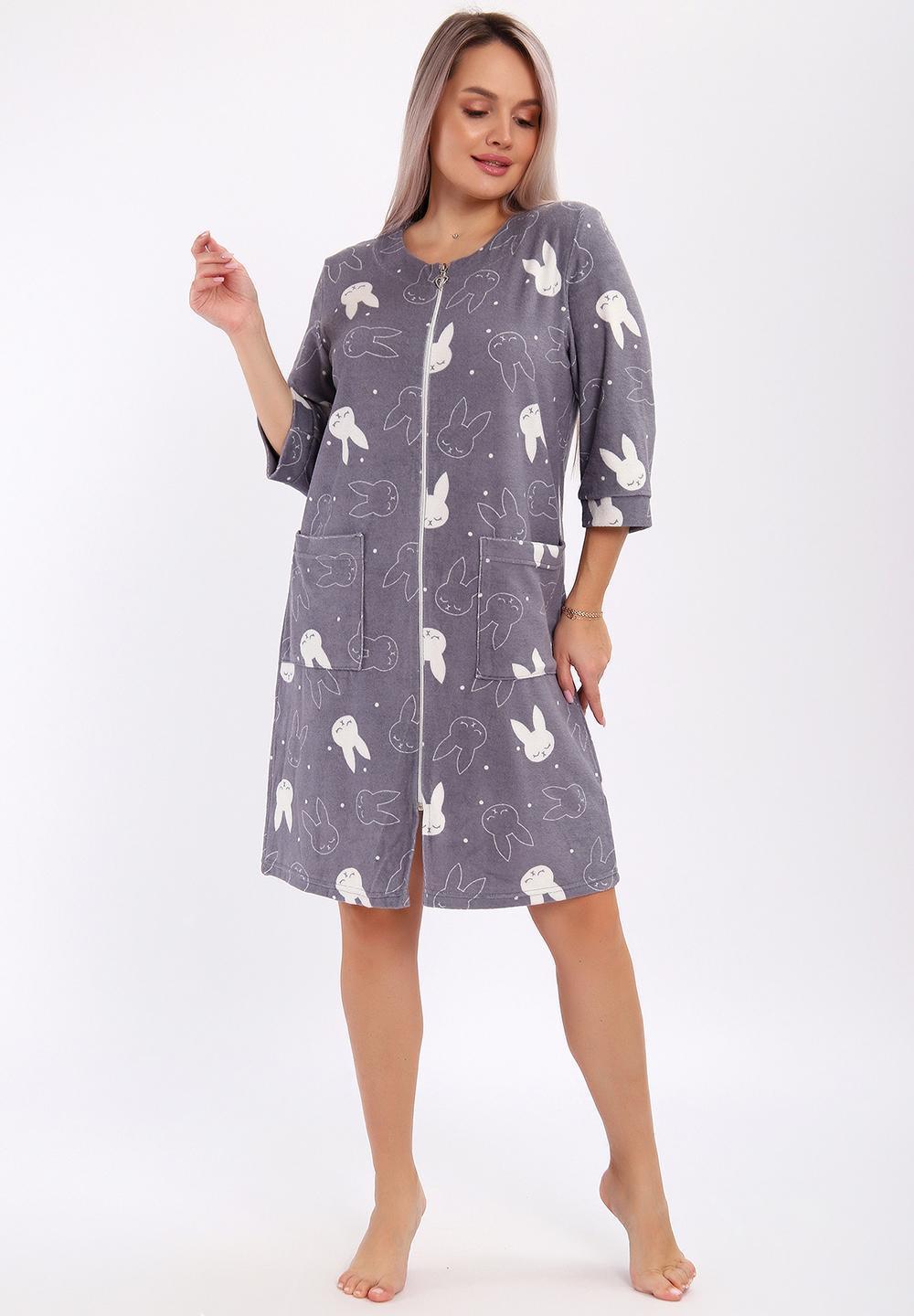 Халат махровый на молнии и двумя карманами.