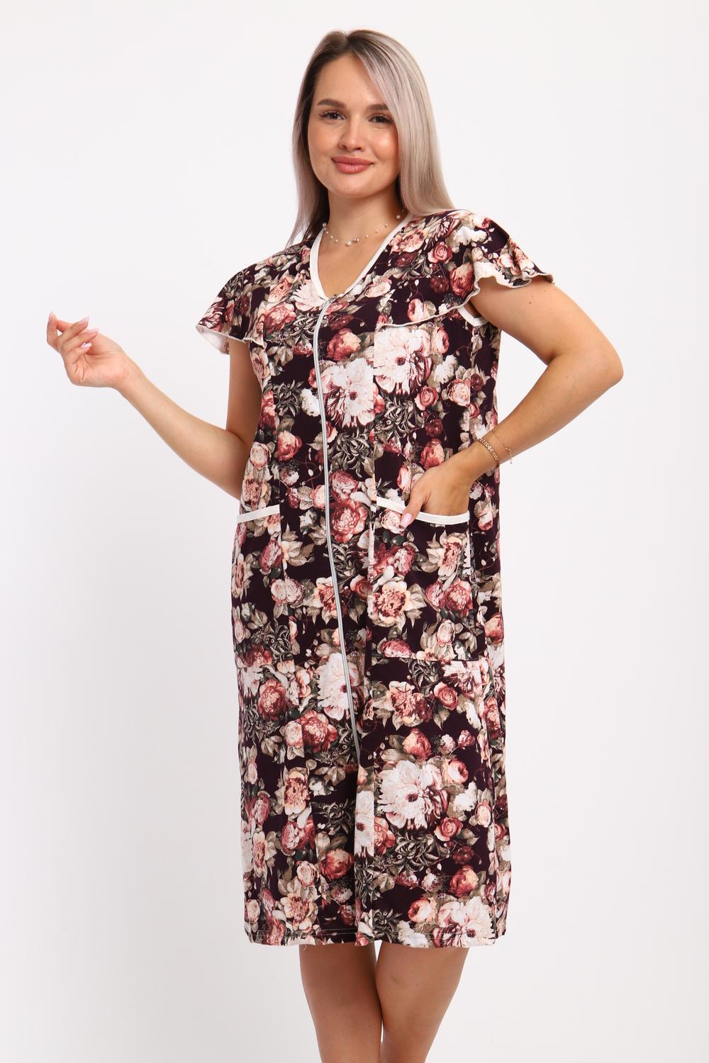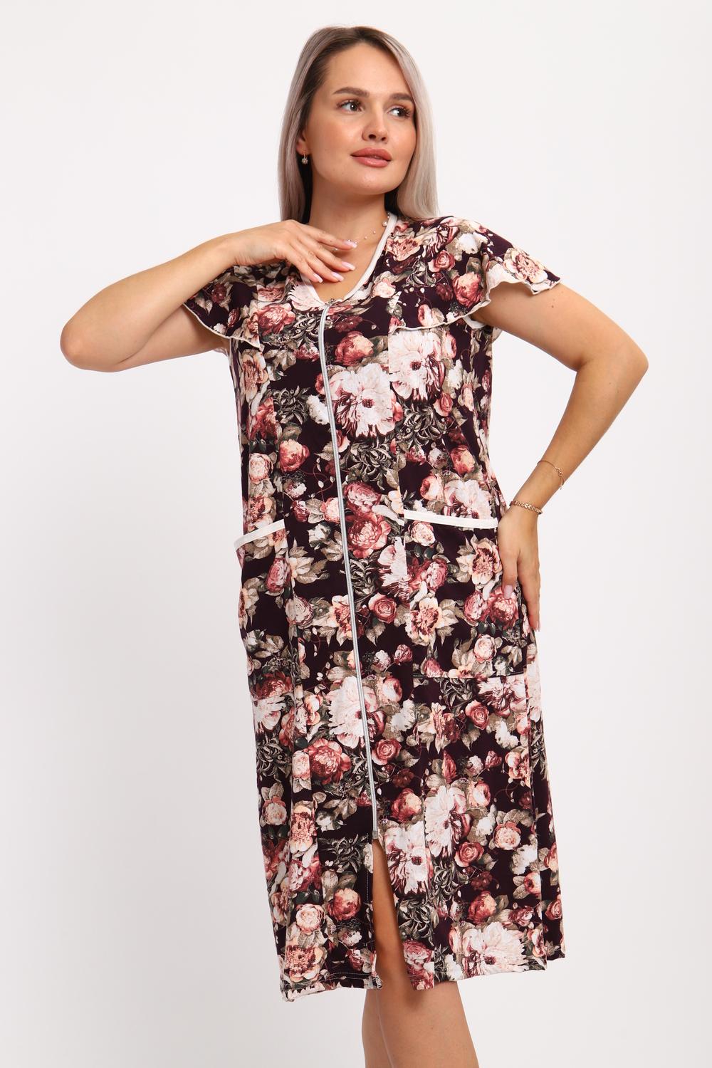 Халат женский на молнии с карманами. Силуэт полуприлегающий ,рукав крылышко.
