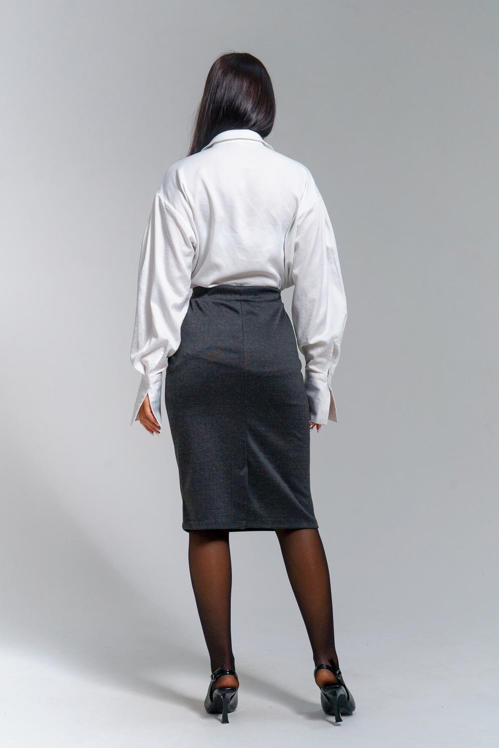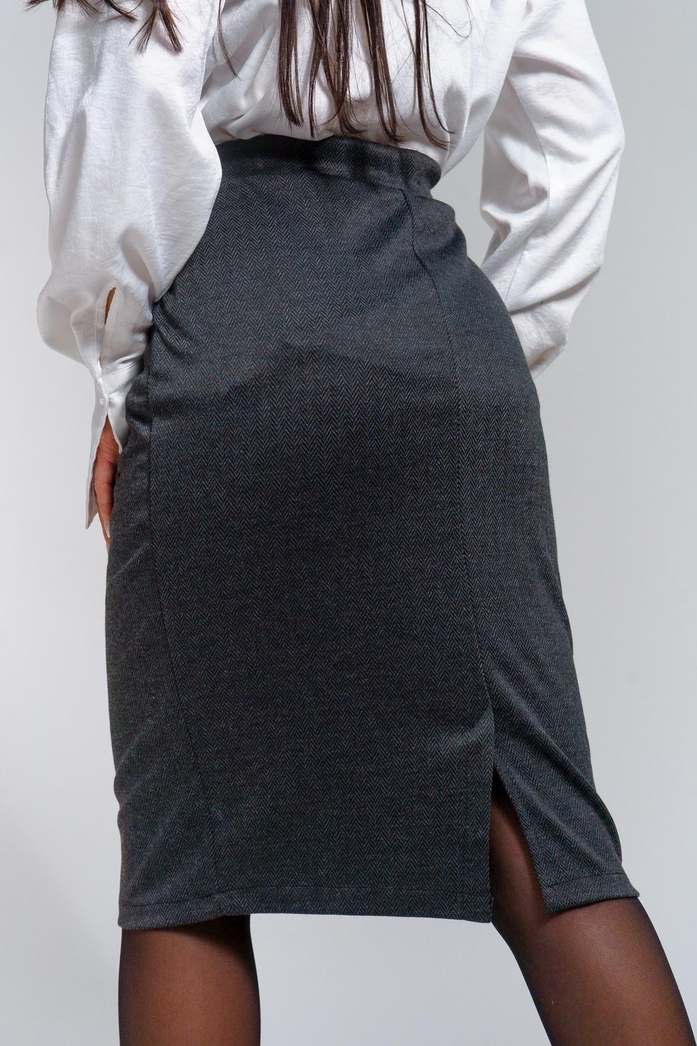 Юбка женская длиной чуть ниже колена, со шлицей. Пояс с эластичной тесьмой для регулировки посадки по талии.