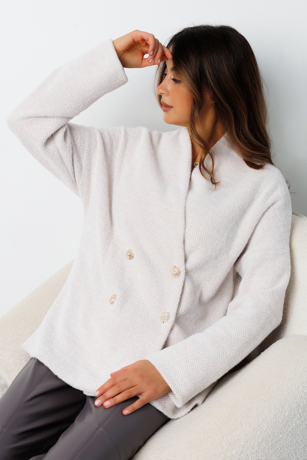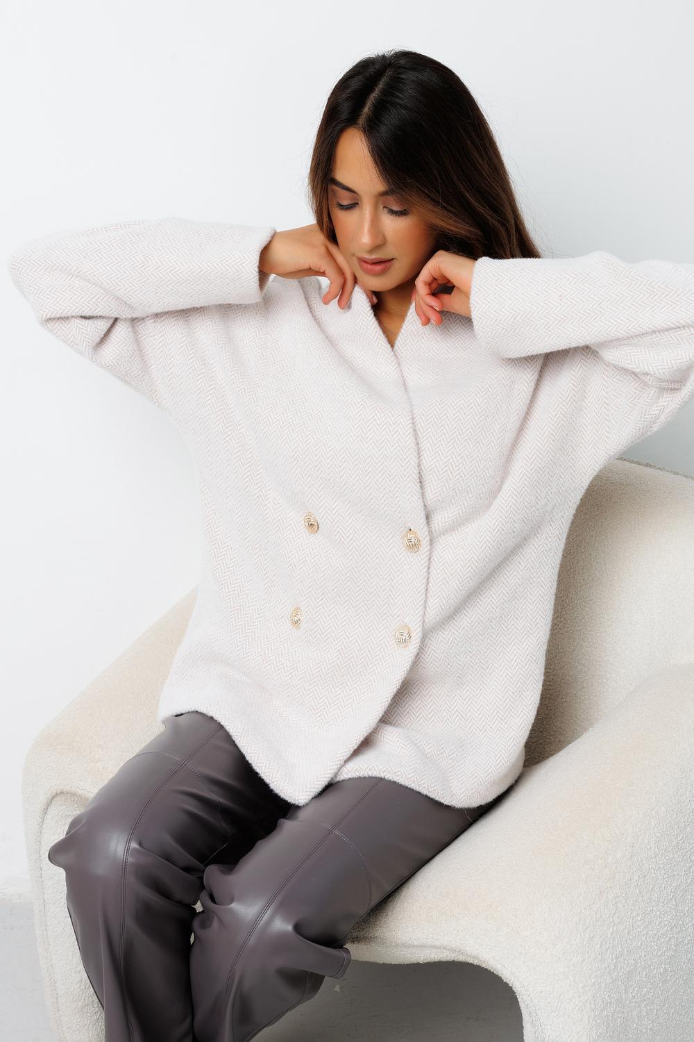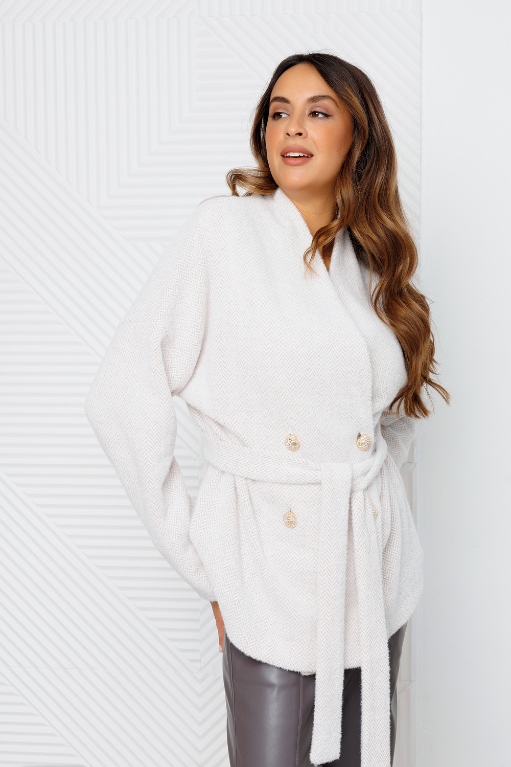 Кардиган женский Raposa - это трендовое и комфортное решение для прохладной осенней погоды. Удлиненный крой оверсайз в сочетании с мягким, пушистым материалом из евро ангоры и вискозы создает ощущение тепла и уюта. Серый кардиган двубортный на запах с поясом и на пуговицах подчеркивает женственную фигуру, выстраивает приталенный силуэт и позволяет регулировать посадку по фигуре. Акцентный воротник кимоно придает кардигану олд мани old money элегантный вид, а золотые пуговицы добавляют изюминку. Благодаря универсальному бежевому цвету и лаконичному рисунку кардиган легко впишется в любой гардероб. Кардиган плюшевый подойдет как офисный вариант, так и для повседневных образов, а благодаря своей универсальности, может быть использован как кофта с длинным рукавом, пиджак, жакет или даже легкое пальто. Кардиган осенний трикотажный можно комбинировать с любыми вещами Вашего гардероба, создавая как классические, так и более смелые кэжуал casual образы. Кардиган теплый уютный в елочку на осень – зиму 2025 – 2026 идеально подойдет для высоких и невысоких, для девочки подростка в школу, а также для беременных будущих мам и полных женщин больших размеров плюс сайз plus size до 56 и 58 размера. Кардиган шерсть ангора стильный достойно представляет российское производство и создает визуальный эффект кардиган из альпаки. Кофточка Raposa станет незаменимой для модных аутфитов как накидка на платье.