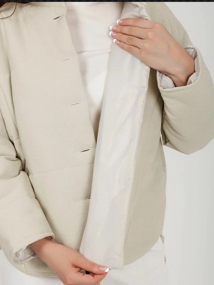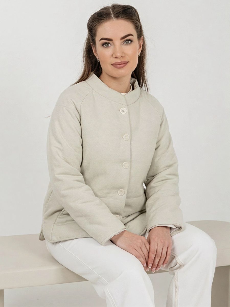 Встречайте тренд 2026 года — утеплённый пиджак‑фуфайка с воротником‑стойкой! Модель, созданная для тех, кто ценит универсальность: она идеальна для весны, лета и осени. Благодаря продуманному утеплению вы будете чувствовать себя комфортно в переменчивую погоду, а лаконичный дизайн с воротником‑стойкой добавит образу современности. Пиджак легко вписывается в разные стили: от кэжуал до смарт‑кэжуал. Носите его с джинсами и футболкой для прогулок, с рубашкой и брюками для офиса или с платьем для свидания. Прямой крой мягко подчёркивает силуэт, не добавляя лишнего объёма. Функциональные карманы и надёжная застёжка на пуговицы делают модель максимально удобной. Сочетайте с любимыми вещами и создавайте актуальные образы весь сезон! Уход: стирка при 30∘C в деликатном режиме, глажка с изнанки.