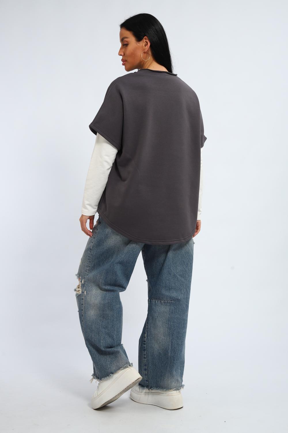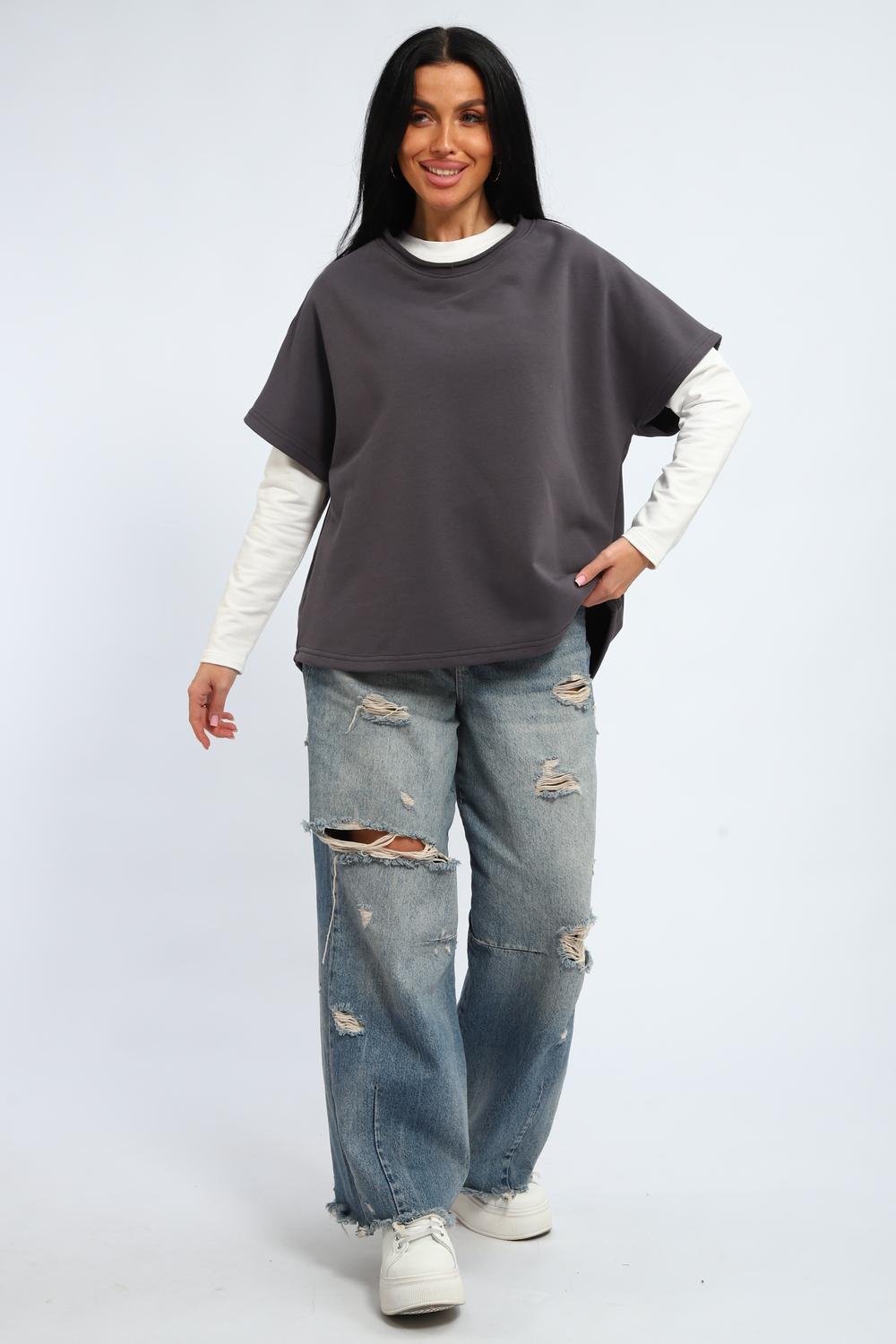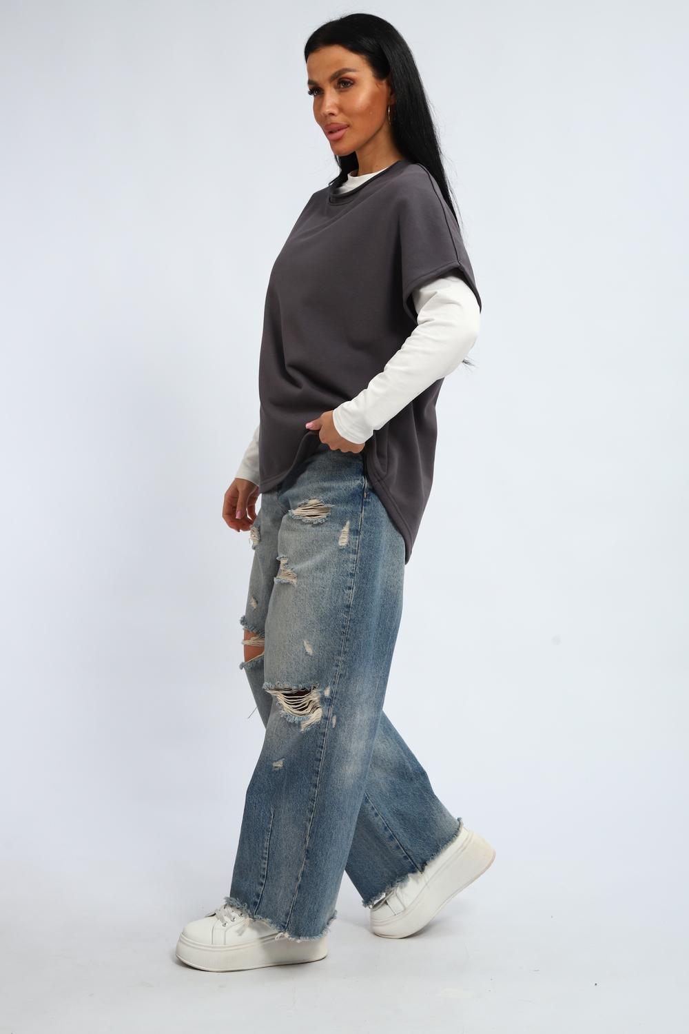 Эта женская кофта жилетка — идеальное решение для тех, кто ценит удобство и практичность. Благодаря свободному крою оверсайз, модель обеспечивает свободу движений и комфорт в течение всего дня. Спущенные плечи и округлый вырез горловины придают образу лёгкость и женственность. Удлинённая длина позволяет носить её как футболку или пончо, что открывает широкие возможности для создания разных луков